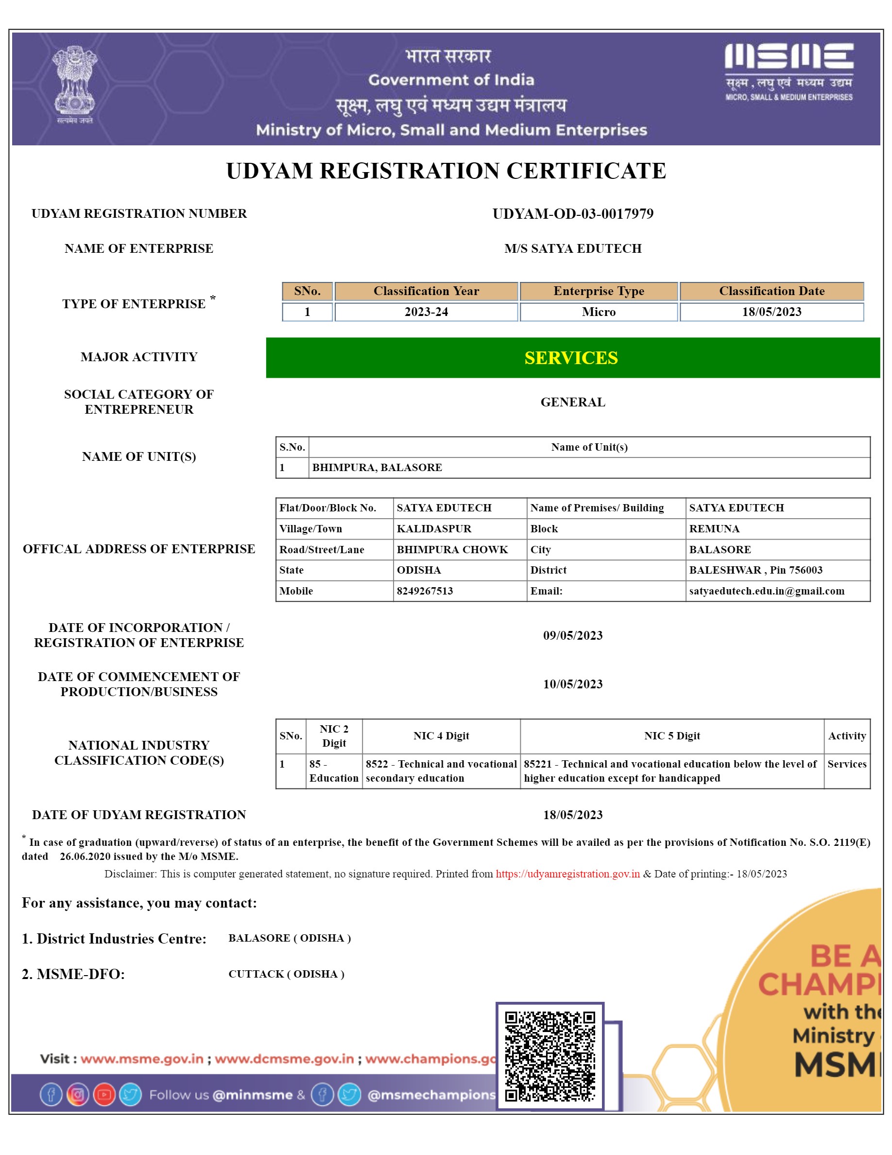 UDYAM Registration certificate