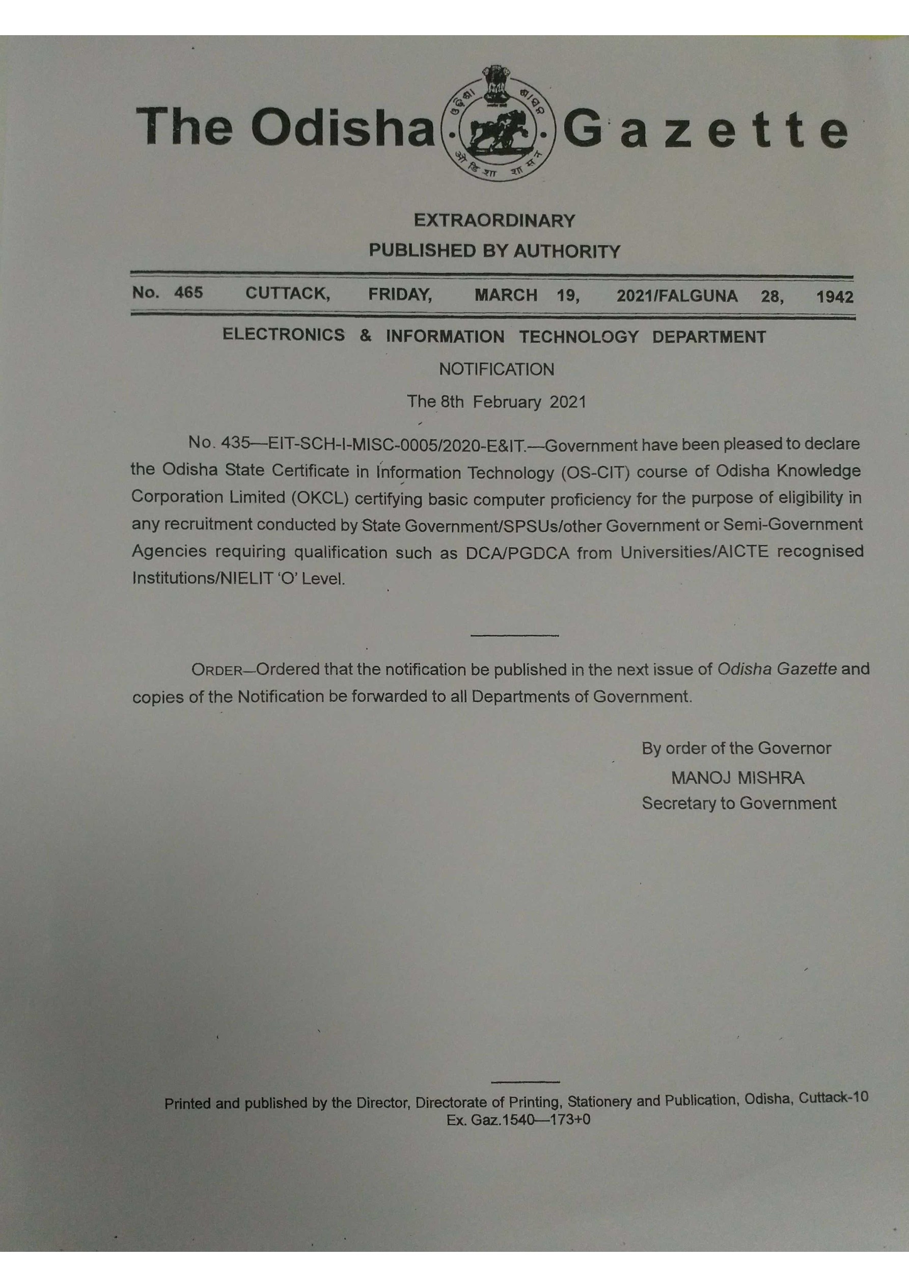 GOVT OF ODISHA